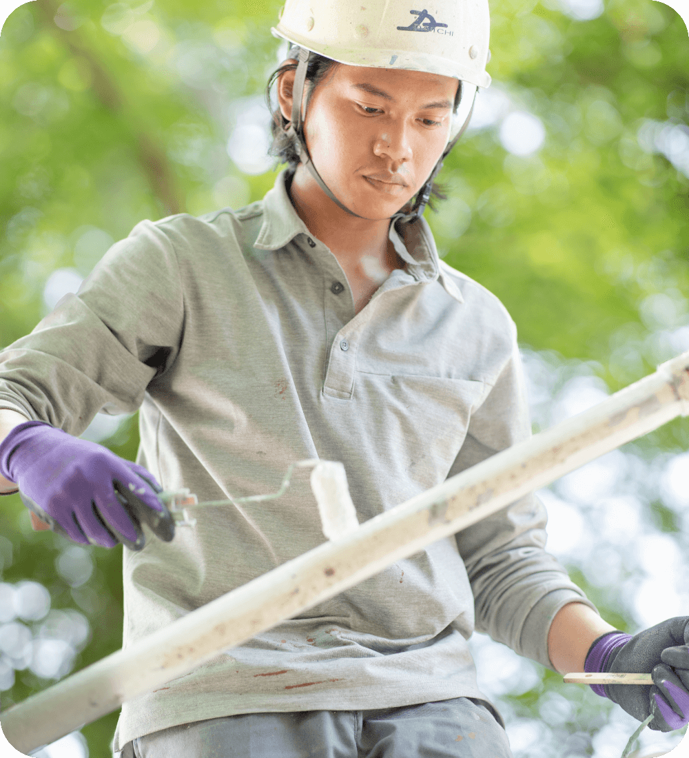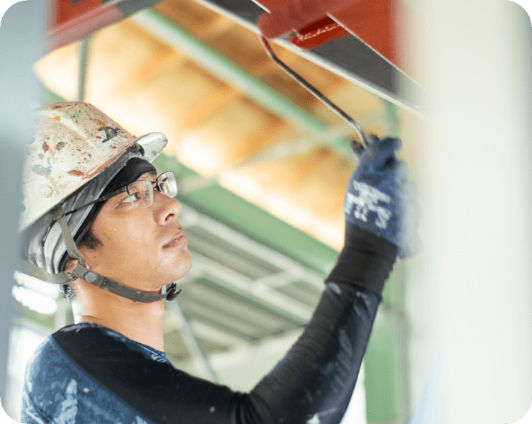 ものづくりの現場は人が育て、技術は人から人へと継承されます。大一塗装では日本人だけでなく外国籍の仲間も迎え入れ、若い世代がさまざまな経験を積みながら成長できる職場づくりに取り組んでいます。多様な人材が誇りを持って働ける環境をつくることが、企業としての責任であり、次代を担う技術者を育てる基盤になると考えています。
