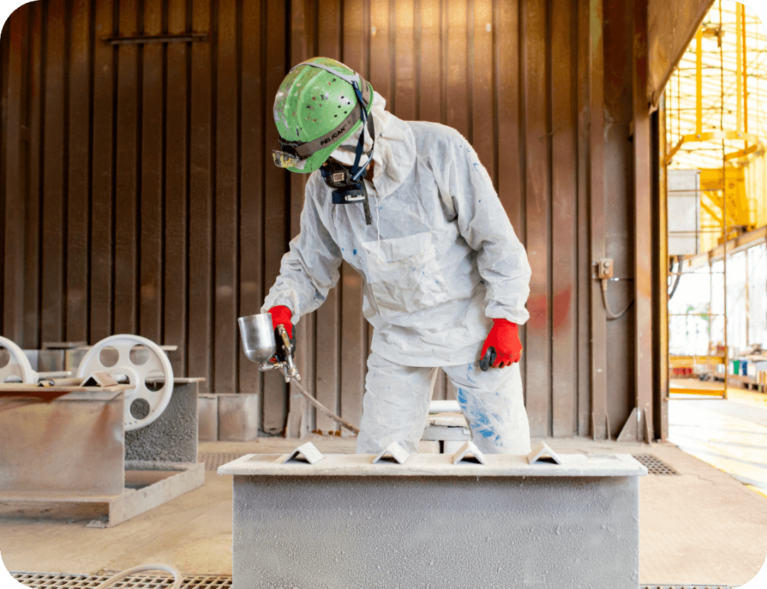 エポキシ・ウレタン・フッ素など幅広い塗料、マンセル指定や調色にも柔軟に対応します。小物から10t以下の大型構造物まで受け入れ可能。仕様外の要望もまずはご相談ください。
