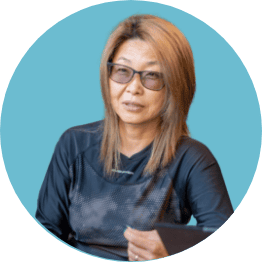 営業および現場マネジメントを担当。板金塗装職人の父と呉服屋を営んでいた母から「職人の技術」と「商人の心」の両方を受け継ぐ。厳格な家庭環境への反発から不良グループも経験。その後、飲食業・接客業でキャリアを積み、塗装会社を設立。大一塗装との協業を経て参画。自身の3人の息子と地域の数百人の子どもたちを見守ってきた経験と懐深さで、社員から「会社のオカン」と慕われている。